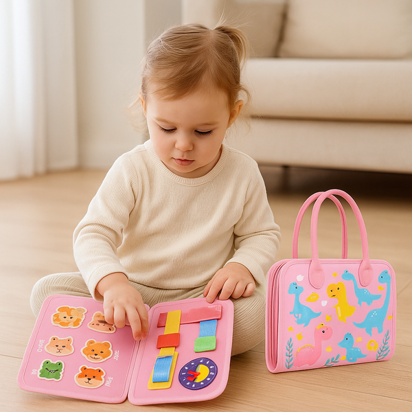 Our Montessori busy book transforms playtime into a confidence-building journey. By mastering zippers, buckles, and puzzles, toddlers gain independence while having a blast with safe, educational activities.